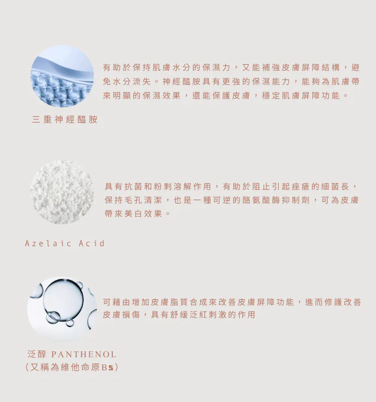 適用膚質:適用於乾燥、暗沉和混合性肌膚。